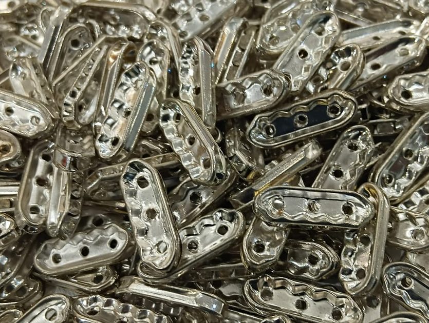 Elevate your jewelry designs with these exquisite silver-plated rhinestone spacer beads. Crafted with precision and adorned with shimmering stones, these bar-shaped spacers are perfect for adding elegance and sparkle to bracelets, necklaces, and other handmade accessories. Designed for durability and shine, they feature multiple holes for easy stringing and secure placement. Whether you’re a professional jewelry maker or a hobbyist, these spacers are the ideal addition to your bead collection.